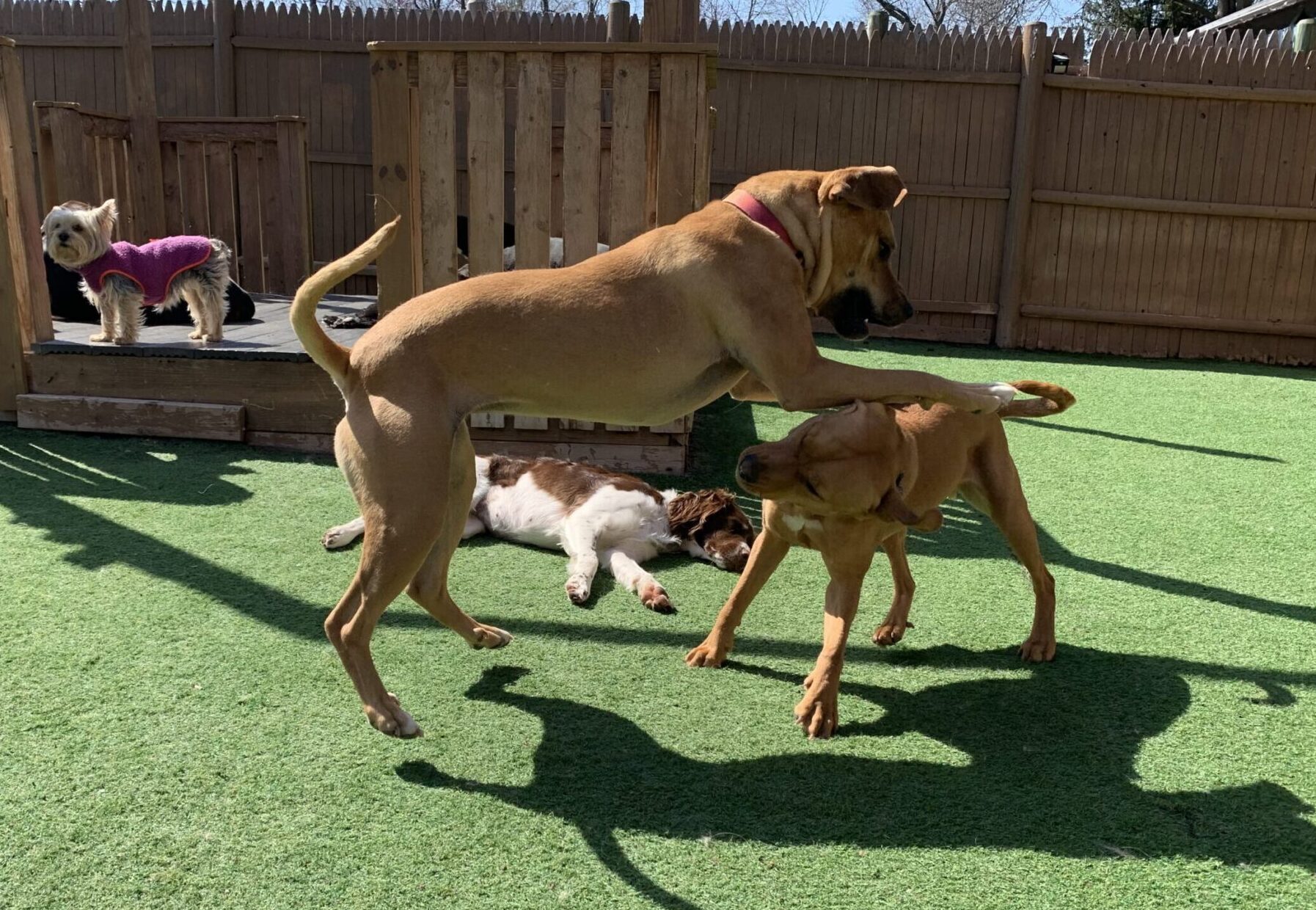 The Dog Scoop is committed to providing your dog with a happy, safe, enjoyable environment whether it’s for a day, an overnight, or during your extended vacation. Call (617) 244-8944 for more information today!