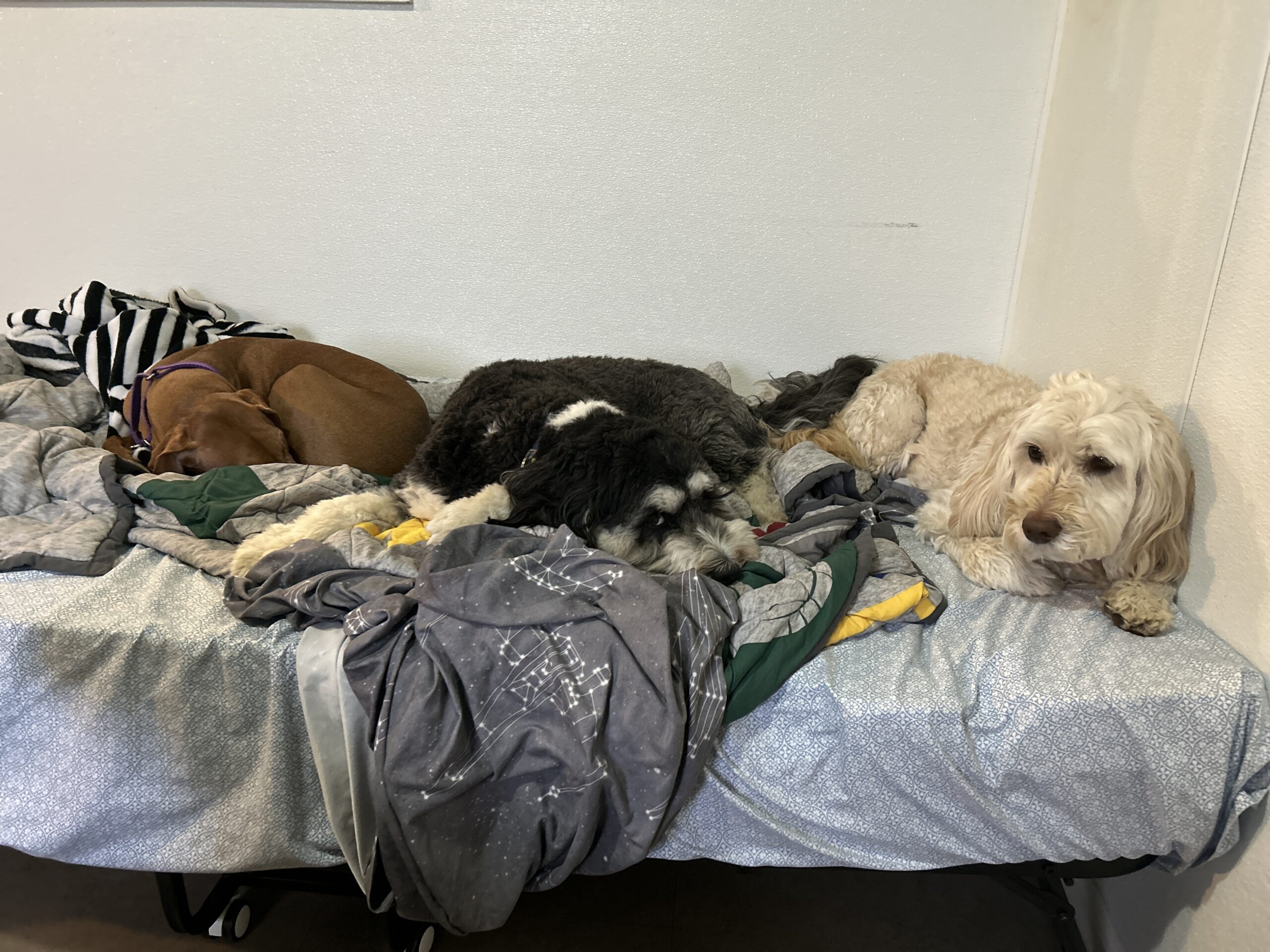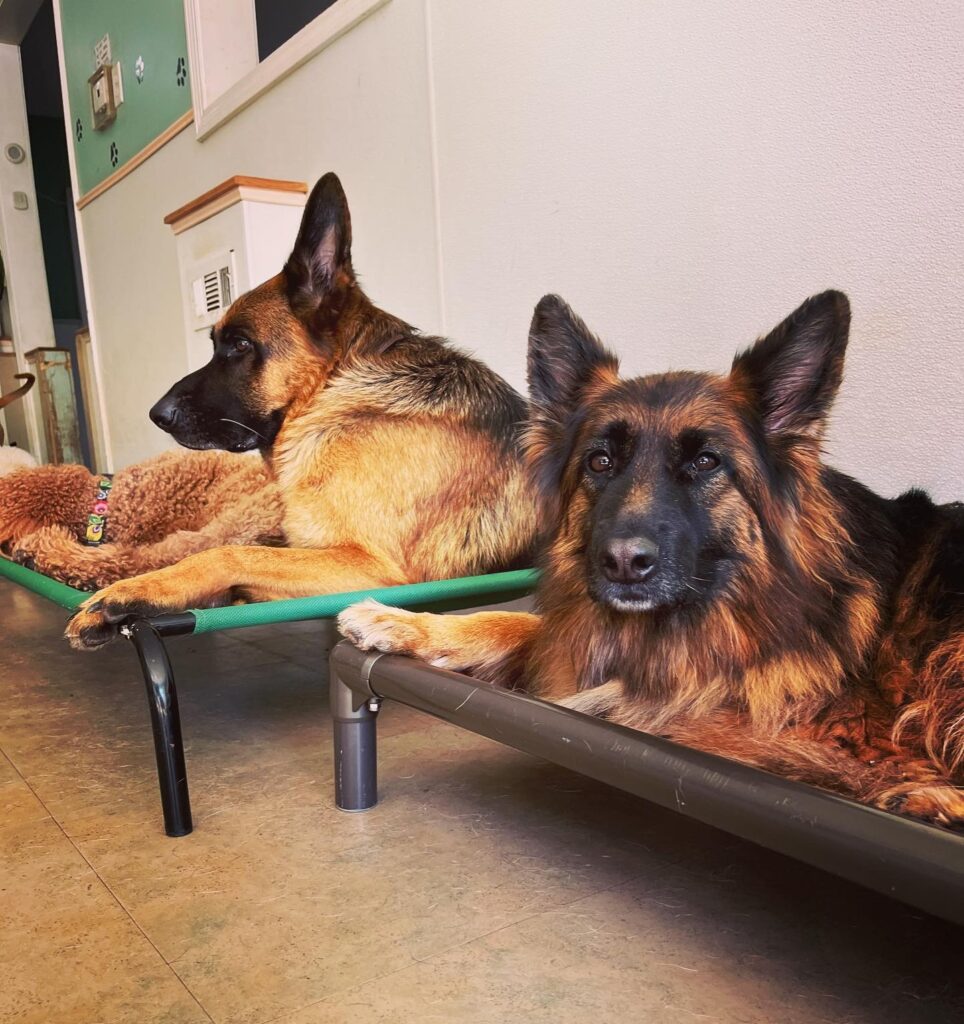 Our 3,000 square foot boarding facility is a home away from home where your dog can comfortably rest after a fun day of playing with their friends! As a crate-free facility, boarding dogs are free to choose where they sleep. From beds, to cots, to comfy blankets, all of our overnight guests get to snooze with their favorite canine friends, along with the reassuring company of our overnight attendants.